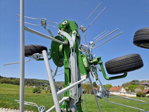 Jetzt in die Zukunft investieren und Steuerlich profitieren ! Mit je 30% Sonderabschreibung in den ersten drei Jahren möglich ! Keine komplizierten Förderanträge ! – die steuerliche Umsetzung erfolgt über Ihren Steuerberater Pronar Heuwender - Typ: PWP 900 - Arbeitsbreite 9m - Kreiselanzahl 8 - aktive, gefederte Aufhängung - Zinkenarme pro Kreisel 6 mit Doppelzinken - Zentralgetriebe nass in Ölbad - Kraftbedarf ca. 70PS - Zapfwellendrehzahl 540 U/min - mechanische Grenzstreueinrichtung - Eigengewicht ca. 1200kg - Anbaukategorie I und II - Bereifung 16x6,5-8 - 1x DW Steuergerät notwendig mit Schwimmstellung Mit einer aktiven und gefederten Aufhängung wird eine sehr gute Geländeanpassung erreicht. Optional: - zusätzliches Tastrad vorne - Straßenbeleuchtung LED Bilder können Zusatzausstattung beinhalten. Gerne bieten wir ihnen die komplette Gründlandtechnik von Pronar an Fragen Sie bei uns an Mähwerke, Heuwender und Schwader in verschiedenen Breiten Gerne können wir Ihnen eine Finanzierung über eine Partnerbank anbieten.Kontaktdaten: