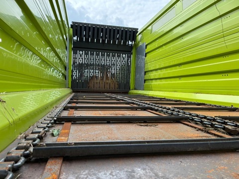 ca. 5700 Fuhren gefahren Hydraulisch klappbare Schneidmulde mit Zentralverriegelung Messervorspannung, mechanisch einstellbar Heckteil mit 3 Dosierwalzen Dosierwalzenantrieb Frontklappe oben, hydraulisch klappbar Knickdeichsel-Untenanhängung, maximale Stützlast 3 t Doppelweitwinkelgelenkwelle, 6-teilig Kugelkopfanhängung K80 Zwangslenkung, elektronisch-hydraulisch Tandemachse, Achslast 18 t, mit hydraulischem Ausgleich Tandem-Bereifung 750/45 R26.5 Alliance Druckluftbremsanlage für hydraulisches Fahrwerk Bremszylinder für Druckluftbremsanlage, Tandemachse 18 t Kotflügel schräg bei Außenbreite >2,55 m, Tandemachse 18 t Kratzbodenantrieb 2-stufig, Rest-Schnellentleerung OPERATOR oder COMMUNICATOR wahlweise Arbeitsbeleuchtung LED Drehmomenterfassung im Antriebsstrang für Beladeautomatik Steuerleitung für Load-Sensing-System Füllstandsensor an Heckklappe Pickup-Entlastung, hydraulisch einstellbar Zusatz-Tastrolle für Pickup, mittig Zulassung Straßenverkehrs-Zulassungs-Ordnung (StVZO)Kontaktdaten: