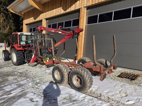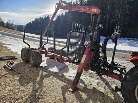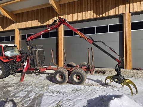 Kesla Zentralrahmen Anhänger 8t mit Forstkran 203t - 6,7 m Reichweite - Drehhebelsteuerung - 3 Rungenpaare - A-Abstützung - Bereifung 400/60-15.5 - hydraulische Bremse auf einer Achse - Palms Greifer 123 cm - neuwertig - 45 kN Flanschrotator - neuwertig - Z-Kran - Eigenölversorgung mit Gusspumpe - Rücklichter mit Lichtschutz - Schwenkwerk mit 2 Schwenkzylindern - Schwenkdeichsel PRIVATVERKAUF!Zul. Gesamtgewicht (kg): 10000