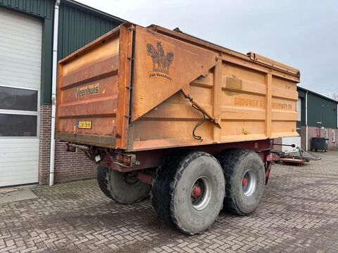 == Overige details (NL) == Veenhuis baggerkieper JVBK 22000 • 22 ton laadvermogen • Inhoud 17 m3 • Bakmaat 5500x2200x1500 mm • Banden 24/20/5 (40%) • Pendel tandem • Rubber geveerde dissel • Hydraulische steunpoot • Hydraulische achterklep • Hydraulische schuifdak • Hydraulische geremd • Draaibaar trekoog • Verlichting • Inclusief kenteken Staat: Gebruikt Bouwjaar: 2007Kontaktdaten: