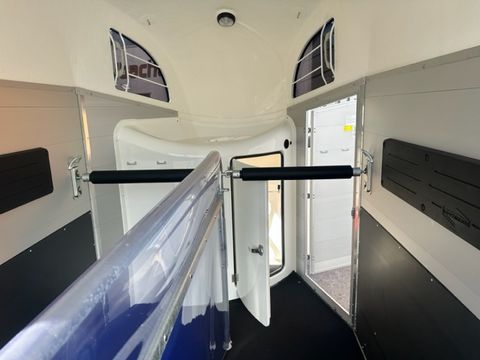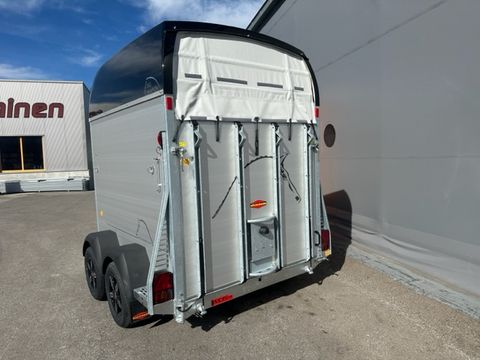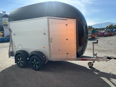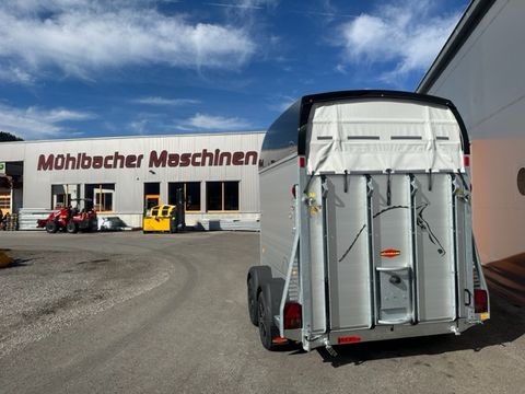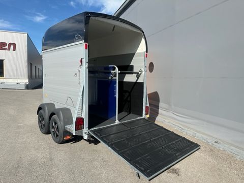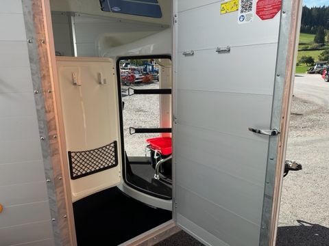 Böckmann Pferdeanhänger Big Champion SKA -WCF- - Einzelradkotflügel Kunststoff (schwarz) - Planenlift mit integriertem Netz - Dekorstreifen mit Pferdekopf - Hinterklappe/1-Flügeltürkombination - Gummibelag auf Hinterklappe (integrierte Trittleisten und Seitenstopp) - Einstiegstür rechts - Alu-Seitenwände 1700mm hoch - Hebevorrichtung Gasdruckstoßdämfper - Heckstrebe geschlossen - 4 Hinterklappenscharniere - Rangiergriff - Gummiboden verklebt und versiegelt - Aluminiumboden - Aufstellfenster in Polyesterhaube - Trittschutz seitlich, Kunststoff (schwarz) - Boxenstangen-Zusatzpolsterung (pro Boxenstange) - Seitenpolsterung - Multi Safe System (Sicherheitsboxenstangensystem) - LED-Deckenleuchte im Pferderaum - LED-Innenleuchte in Sattelkammer - 2 Sattelhalter drehbar und ausziehbar - Besen mit Teleskopstiel - 2 Türnetze - 1 Gertenhalter - 6 Trensenhaken in der Sattelkammer - Kunststoffschaufel mit Stiel - Sattelkammertür außen links - Sattelkammer im Bug innen, von innen und außen bedienbar - Spiegel an Sattelkammertür - 2 Futtertröge - Stützrad automatik - mechanische Auflaufbremse - V2A-Verschraubung - Längsträgerfahrgestell mit V-Deichsel (geschraubt) - tiefergelegtes WCF-Fahrwerk mit Radstoßdämpfer - Kugelkupplung abschließbar - Innenmaße LxBxH ca. 3560 x 1750 x 2350mm - zul. Gesamtgewicht 2.700kg - Eigengewicht 1.033kg - Nutzlast 1.667kg - Polyesterhaube anthrazit-metallic - Polyesterbug anthrazit-metallic - Alufelgen - 2,7to Gesamtgewicht Das Verkaufsteam der Firma Mühlbacher Maschinen zeigt Ihnen den Anhänger gerne und bittet um Terminabsprache für eine Besichtigung bei uns im Betrieb. Besuchen Sie auch unsere 1.500m² große Ausstellungshalle!Zul. Gesamtgewicht (t): 2,7