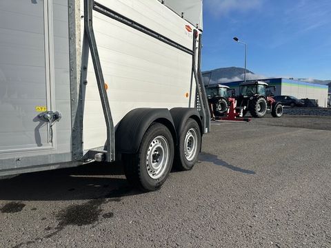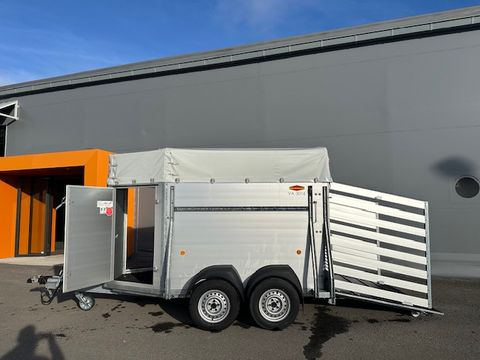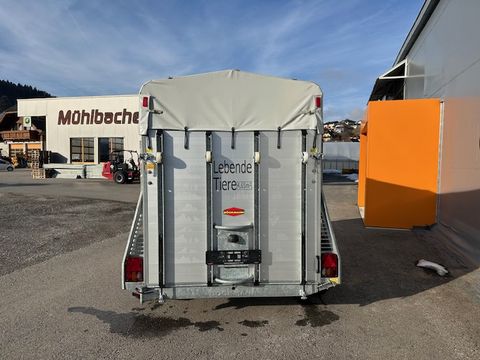Böckmann Viehanhänger VA 3016/27 - Kunststoffkotflügel - Querversteifung der Seitenwände - Gummibelag auf Hinterklappe (integrierte Trittleisten und Seitenstopp) - Alu eloxierte Seitenwände 1500mm hoch - Rangiergriff - Hebevorrichtung - 3 Seitenstreben - 4 Hinterklappen-Scharniere - Lichtanlage mit Rückfahrscheinwerfer und Stecker 13-polig - Gummiboden verklebt und verisegelt - Aluminiumboden - 3 Anbinderinge - Innenbeleuchtung - Stützrad automatik - Comfort-Federungs-Fahrestell (CFF) - Innenmaße LxBxH ca. 3050x1650x2020mm - zul. Gesamtgewicht 2.700kg - Eigengewicht 901kg - Nutzlast 1.799kg - Hinterklappe/1-Flügeltürkombination - Entladeklappe vorne rechts mit Gummibelag (Tür links) - Dopp. Alu-Absperrgitter v. Klappe schwenkbar als Rampenbegrenzung 1400mm Das Verkaufsteam der Firma Mühlbacher Maschinen zeigt Ihnen den Anhänger gerne und bittet um Terminabsprache für eine Besichtigung bei uns im Betrieb. Besuchen Sie auch unsere 1.500m² große Ausstellungshalle!Zul. Gesamtgewicht (t): 2,7
