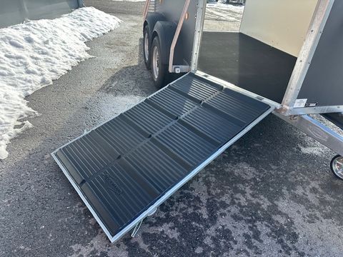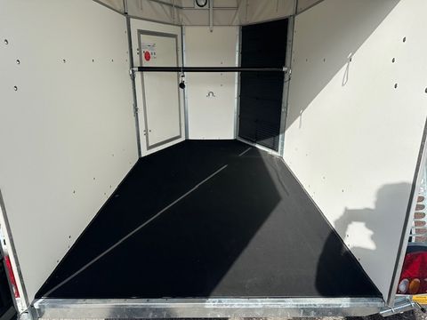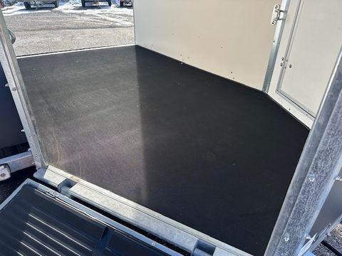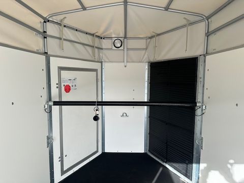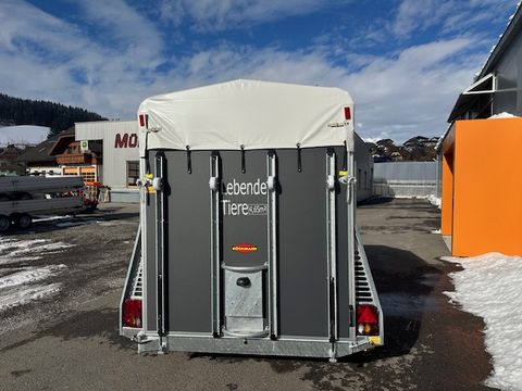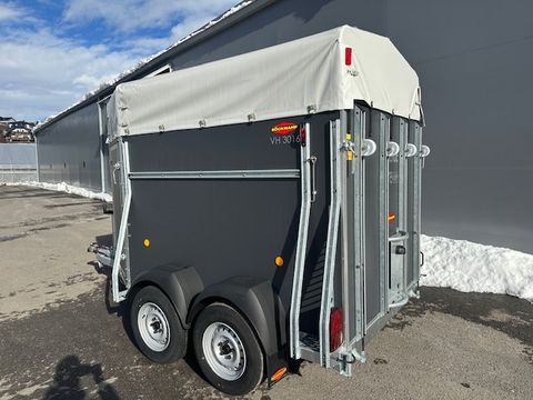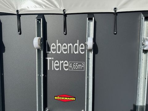 Böckmann Viehtransporter VH 3016/27 - Comfort-Federungs-Fahrgestell (CFF) - Stützrad automatik - Grauer Plywood-Aufbau, 1500mm hoch - Plywood-Boden - Plane und Spriegel, grau - 4 Hinterklappen-Scharniere - Hebevorrichtung - Einstiegstür rechts mit 2 Winkelhebelverschlüssen - Gummiboden verklebt und versiegelt - Gummi auf Beladeklappe (integrierte Trittleisten) und Seitenstopp - 3 Anbinderinge - Innenbeleuchtung - zul. Gesamtgewicht 2.700kg - Innenmaße LxBxH 3050x1650x2020mm - Hinterklappe/1-Flügeltürkombination - Entladeklappe vorne rechts mit Gummibelag (Tür links) Das Verkaufsteam der Firma Mühlbacher Maschinen zeigt Ihnen den Anhänger gerne und bittet um Terminabsprache für eine Besichtigung bei uns im Betrieb. Besuchen Sie auch unsere 1.500m² große Ausstellungshalle!Zul. Gesamtgewicht (t): 2,7