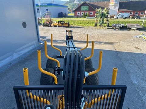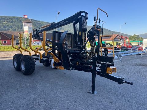 Country Rückewagen 70S mit Kran 670 70S Zentralrahmenanhänger - Pendelachse (Boogieachse) - hydraulische 2-Rad Bremse - Schutzgitter - Achse verschiebbar - 3 Paar Rungen - Kurbelstützfuß - Nutzlast 7.000kg - Leermasse 820kg - Ladelänge 3.500m 670 Dreipunktkran - Endlosrotator CR300, 3to - hydr. Klappstützfüße - Weitwinkelgelenk am Kran - hydr. Teleskopausschub - Hubzylinderschutz - EURO Kransteuerung ON/OFF - Kran-Auslage 6,7m - Hubkraft bei 3,5m: 870kg - Hubkraft bei 6,7m: 451kg - hydraulische Knickdeichsel - Rahmenverlängerung (ausziehbar 0,7m) + Rungen - Stativ für Steuerblock auf Deichsel - eigene Ölversorgung mit Zahnradpumpe - Beleuchtung Kilpi 12V, Stecker 7-polig - Pendelbremse - Bereifung 400/60-15.5 - Holzgreifer 0,22, Öffnungsweite 1230mm Das Verkaufsteam der Firma Mühlbacher Maschinen zeigt Ihnen den Rückewagen gerne und bittet um Terminabsprache für eine Besichtigung bei uns im Betrieb. Besuchen Sie auch unsere 1.500m² große Ausstellungshalle!Kontaktdaten:
