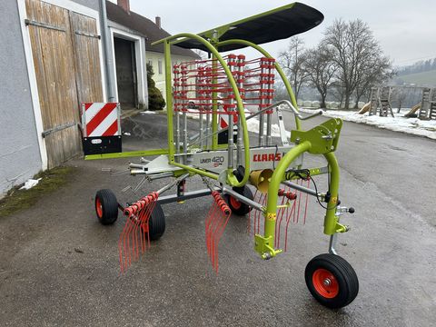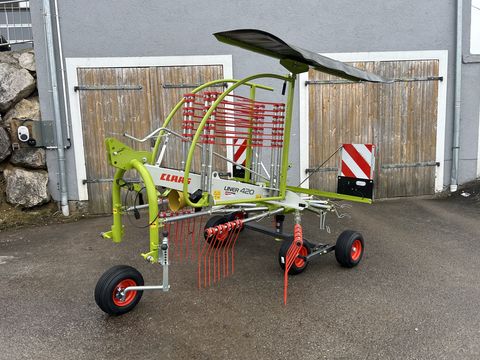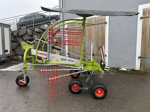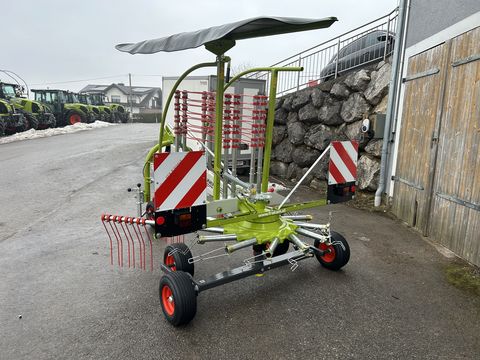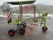 Einkreiselschwader für 3-Punkt-Anhängung, Kat I+II Antrieb 540 U/min Arbeitsbreite 4,20 m 1 Schwadkreisel mit 3,20 m Durchmesser 12 Zinkenträger 4 Doppelfederzinken je Zinkenträger Doppelfederzinken Ø 9,0 mm Kreisel: Schwadglocke, hermetisch geschlossen Sphäroguss-Kurvenbahn, Laufrollen (kugelgelagert) und Zinkenarmlagerung im Ölbad laufend PROFIX Zinkenträger: Doppelwandig mit integrierter Sollbiegestelle Steckverbindung mit Vielfachverzahnung Bügelsicherung PROFIX Werkzeuglos austauschbar CKL Kraftflusslenker mit Talfahrtstabilisator KONTUR Fahrwerk mit Bereifung 16x6.50-8 (4 x) Zinkenverlustsicherung, integriert Schutzbügelklappung, federunterstützt Schwadtuch, längs- und höheneinstellbar Transportmaße: Breite 3,20 m bzw. 2,00 m (Zinkenträger abgenommen) Gewicht: ca. 560 kgHektar (ha): 0