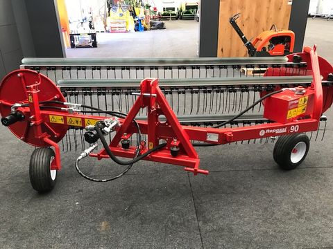 Repossi Kammschwader 90/5XL - Arbeitsbreite einschl. Schwade 4m - Transportbreite 3,25m - Ballonräder 16x6.50-8 - 5 Haspeln - 20 Zähne/Haspel - Gewicht ca. 397kg - unabhängige Hydraulikanlage mit Aufsteckpumpe (540 oder 1000 Pumpe) Das Verkaufsteam der Firma Mühlbacher Maschinen zeigt Ihnen den Schwader gerne und bittet um Terminabsprache für eine Besichtigung bei uns im Betrieb. Besuchen Sie auch unsere 1.500m² große Ausstellungshalle!Kontaktdaten: