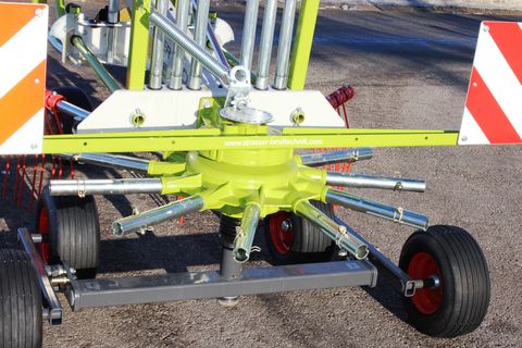 - Kreiseldurchmesser: 2,90m - 11 Zinkenträger mit je 4 Doppelzinken - Schwadglocke, hermetisch geschlossen und wartungsfrei - Sphäroguss-Kurvenbahn, Laufrollen (kugelgelagert) und Zinkenarmlagerung im Ölbad laufend - Claas Kraftflusslenker für Talfahrt ohne Auflaufen und optimale Zentrierung des Kreisels beim Anheben - KONTUR Fahrwerk mit Bereifung 16x6.50-8 (Tandemachse) - Zinkenverlustsicherung, integriert - Schutzbügelklappung, federunterstützt - Schwadtuch, längs- und höheneinstellbar - Transportmaße: Breite 2,98 m bzw. 2,22 m (Zinkenträger abgenommen) - Schwadablage links Einzelschwader | Einfachschwader | Einkreiselschwader | SchwaderHektar (ha): 0