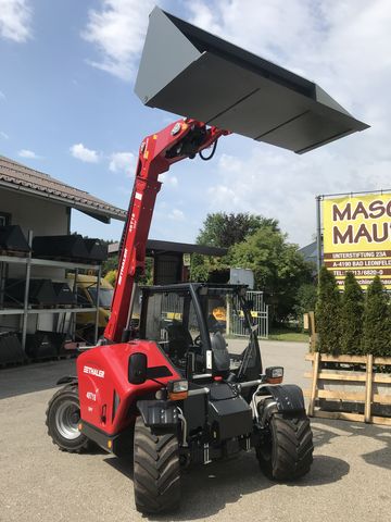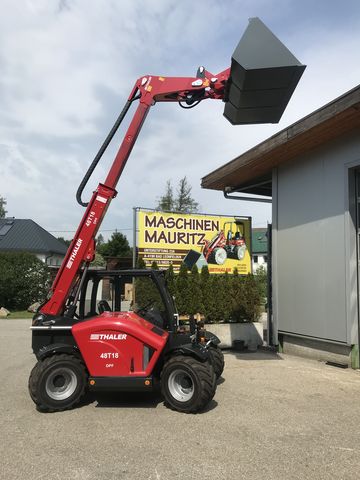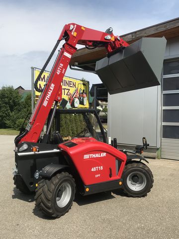 Verkaufe Thaler Teleskoplader 48T18 DPF einer Hubhöhe von 4900 mm Hubkraft von 2,5 to besonders wendig durch die 4 Rad-Lenkung (gegen Aufpreis auch mit Vorderrad- und Hundeganglenkung erhältlich) durch die kompakte Bauweise trotzdem noch sehr übersichtlich starker 4 Zylinder Yanmar Motor mit 48 Ps Motorleistung und Dieselpartikelfilter Stufe V 25 kmh Fahrgeschwindigkeit 2 stufig Parallelausgleich Planetenachsen Vollkabine mit Heizung und Radio serienmäßig 60 l/min Hydraulikleistung Hydraulische Geräteverriegelung serienmäßig kann mit einem Standsicherheitsnachweis für Arbeiten mit einer Arbeitsbühne im Zwei-Mann-Betrieb ausgestattet werden Heckhydraulik gegen Aufpreis Preis für Grundmaschine ohne Zusatzausstattung, verschiedenste Ausstattungen zur Auswahl z.B: Breitreifen, andere Aufnahme… - lieferbar gegen Aufpreis, verschiedenste Anbaugeräte lagernd, Auch günstige Finanzierung über unsere Partnerbank möglich. Laufzeit bis 86 Monate mit oder ohne Anzahlung. Sprechen Sie uns hierzu gerne an. Überzeugen sie sich von der Qualität unserer Produkte. Hoflader kann jederzeit bei uns am Betriebsgelände Probe gefahren werden. Weiters habe wir laufend gebr. Hoflader verschiedener Marken lagernd. Für einen Besichtigungstermin melden sie sich vorher bitte kurz telefonisch an. Wir beraten sie gerne. Irrtum und Zwischenverkauf vorbehaltenKontaktdaten: