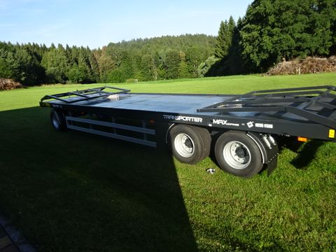 Metal Fach Ballentransportanhänger Modell T 019/1 MAX Eigengewicht: 4000kg Gesamtabmessungen:12000mm x 2550mm x 3500mm mit eingefahrenem Heckrahmen Plateaugröße: 9870mm x 2550mm x 2345mm - Palettenbreite !!!! Ladehöhe :1150mm Ladegitter vorne und hinten Niederquerschnitt Bereifung 445/45 R19,5 ADR-Achsen seitlicher Unterfahrschutz Spannketten mittig für beide Ladegitter - Ösen für Spanngurte - Y Deichsel mit Zugöse 40 mm 1 x Gurtenkiste LED Beleuchtung 2- Kreis Druckluftbremsanlage mit ALB Regler Feststellbremse mit Kurbel 2 x Unterlegekeile hinterer Auszug +100 cm Kotflügeln an allen Achsen Zulassung 25 km/h oder 40 km/h möglich Lieferbar Ende Februar 2026 !!!!Zul. Gesamtgewicht (t): 18