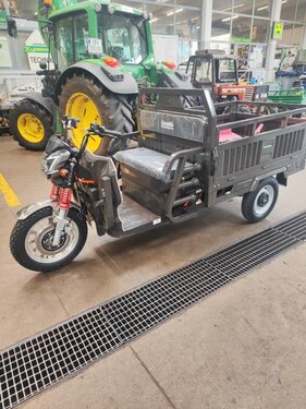 Farben nach Verfügbarkeit COC geprüft, mit europäischer Straßenzulassung L2e Technische Daten: Abmessungen (L/B/H): 3250/1180/1360 mm Motorleistung: 3 kW/72V Batterien: 58 Ah Zuladung: Bis zu 500 kg Geschwindigkeit: Bis zu 45 km/h Ladeflächenmaße (L/B): 1600/1100 mm Grundausstattung: Ladefläche 3-seitig aufklappbar Kipper (manuell) LED BeleuchtungKontaktdaten: