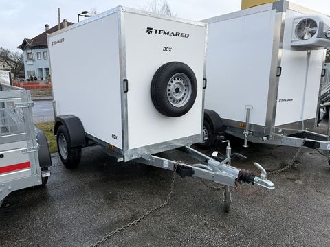 Geschlossener Anhänger in Wasserdichter Ausführung, Doppelte Tür hinten zum versperren, Ersatzrad mit Halter, Auflaufbremse, Abstellstützen, AuffahrampeZul. Gesamtgewicht (kg): 1300