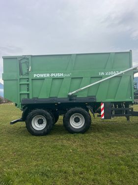 Der Abschiebewagen der Marke Brantner, Modell unbekannt, aus dem Baujahr 2021, ist ein robustes und vielseitiges landwirtschaftliches Fahrzeug. Mit einer Breite von 255 cm bietet dieser Abschiebewagen eine stabile Basis für den Transport von Schüttgütern und anderen landwirtschaftlichen Materialien. Zu den herausragenden Ausstattungsmerkmalen dieses Modells gehört eine zuverlässige Druckluftbremse, die für sicheres und effektives Bremsen sorgt. Der Typenschein ist vorhanden, was die rechtliche Nutzung erleichtert. Für zusätzliche Stabilität und Benutzerfreundlichkeit ist der Wagen mit einem hydraulischen Stützfuß ausgestattet. Die Lenkachse verbessert die Manövrierfähigkeit, insbesondere auf engen Feldern oder in schwierigen Geländebedingungen. Eine automatische Rückwand erleichtert das Entladen des Transportguts, während die integrierte Plane das Ladegut vor Witterungseinflüssen schützt. Zudem verfügt der Abschiebewagen über eine Rollplane, die eine einfache Abdeckung des Ladeguts ermöglicht. Eine hydraulische Siloklappe sorgt für präzises Entladen von Silage oder anderen Schüttgütern. Die moderne LED-Beleuchtung bietet hervorragende Sichtbarkeit und Sicherheit bei schlechten Lichtverhältnissen. Mit der K-80 Kupplung ist der Wagen kompatibel mit modernen Zugmaschinen, was seine Einsatzmöglichkeiten erweitert. Der Zustand des Wagens ist mit der Klasse 2 als "Gut" bewertet, was seine Zuverlässigkeit und die noch lange Nutzungsdauer unterstreicht. Dieser Abschiebewagen von Brantner ist eine ausgezeichnete Wahl für Landwirte, die ein zuverlässiges, gut ausgestattetes und vielseitiges Transportfahrzeug suchen.Zul. Gesamtgewicht (t): 15,74