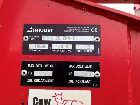 Futtermischwagen, 2-Schnecken-Mischer, Volumen: 28 cbm., Mischsystem: vertikal, elektrische Wiegeeinrichtung Programmierwaage CC 400, zweite Anzeige für Ladefahrzeug TFM Tracker Basic Software 2 x Autom. schwenkbare Rutschen Tandem-Fahrwerk, Druckluftanlage, Austrag: beidseitig, reparaturbedürftig (Behälter und Schnecken),Kontaktdaten: