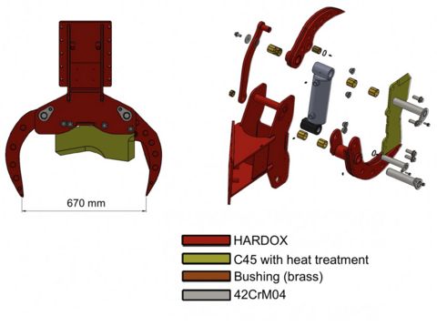 Österreichweit kostenloser Versand! Hydraulischer Fällgreifer CF-11R Der hydraulische Fällgreifer CF-11R besteht aus 100 % Hardox-Stahl und verfügt über eine gehärtete Schneidklinge (43 HRC) sowie Rotator. Er ist ideal zum Fällen, Schneiden und Greifen von Bäumen und Stämmen bis Ø 13 cm. Geeignet für Energieholz, Rodungsarbeiten sowie Feld- und Straßenränder. Mit der großen Öffnung von 650 mm können auch mehrere dünne Bäume gleichzeitig geschnitten werden. 2-in-1-Funktion: Schneiden und Greifen – Messer abnehmbar, auch als Holzgreifer nutzbar. Technische Daten: * Gewicht: 132 kg * Max. Stammdurchmesser: 110–130 mm * Betriebsdruck: 230–260 bar * Ölfluss: 25–50 l/min * Max. Öffnung: 650 mm * passend zu Minibagger: 2,0–3,0 t * Packmaß: 600 × 800 × 450 mmÖffnungsweite (cm): 650