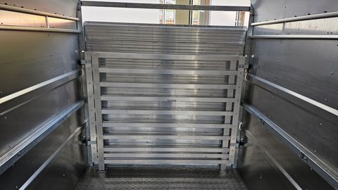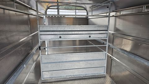 Nugent Viehanhänger LH4318H-H - mit Transportschaden Viehanhänger mit 2 Achsen Abmessungen: L 4,32m/ B 1,80m/ H 2,15m Höchstzulässiges Gesamtgewicht: 3.500 kg Bereifung 195/75R16C inkl. Reserverad Spezial-Federung ,,Parabolic Equalizer" Standardrampe Halterung Trennwand an der Vorderseite Seitliche Lüftungsklappen oben LED-Beleuchtung, LED-InnenbeleuchtungZul. Gesamtgewicht (t): 3,5