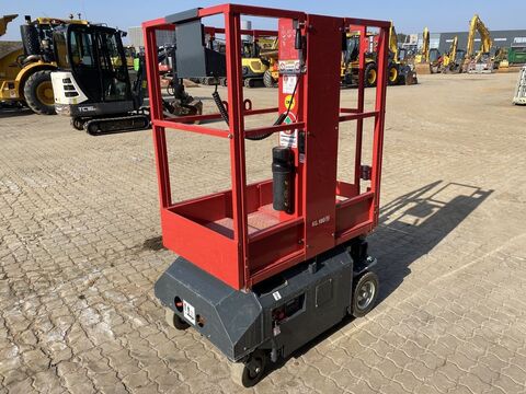 == More details (EN) == Steering: 2 wheel steering Wheel front type: Non-marking tires Wheel rear type: Non-marking tires Lifting speed up/down (sek.): 16/21 Platform height: 2900 mm Platform width: 630 mm Platform length: 1036 mm Platform extension: 660 mm Free height: 87 mm AGM vedligeholdelsfrie batterier