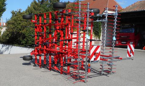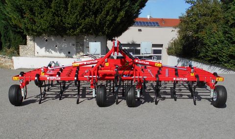 7-balkiger Bio-Leichtgrubber Güttler SuperMaxx 50-7 mit 38 Zinken, 4 + 2 Stützräder, Duo-Striegel und Beleuchtung. Das innovative Konzept von Güttler: Ein bodenschonendes, leichtes Gerät ohne Walze, Tiefenführung über Stützräder vorne, der Oberlenker des Schleppers hält die Maschine in der Waage, robuste Federzinken Dim. 45 x 12 mit Doppelblattfederung und progressiver Charakteristik, enger Strichabstand von nur 13 cm / Bodenfreiheit unter dem Rahmen 56 cm, robuster Nachstriegel mit 12 mm Zinken zum Krümeln, Einebnen, Herauskämmen von Unkräutern, resultierender Strichabstand 6,5 cm (Striegel agressiv gestellt). Verfügbare Arbeitsbreiten von 2,95 bis 8,95 m. Unser Verkaufsteam zeigt Ihnen gerne persönlich die angebotene Maschine. Vereinbaren Sie mit unseren Mitarbeitern einen Termin oder besuchen Sie zu den angeführten Geschäftszeiten. Wir stehen Ihnen gerne zur Verfügung.Zinken (Stk.): 37