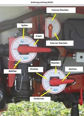 Serienausstattung: ============ 6.000 l Haupttank mit Rotationsspühlung Frischwassertank 540 l 20 l Tank für Handwaschwasser 36 m/24 m Gestänge Hubbereich des Gestänges: 0,5 - 2,3 m Membran-Kolbenpumpe ZETA 400 (400l/min) Einfüllschleuße 60 l unter Klappe mit Beleuchtung ISOBUS Steuerung ARAG Armaturen Flüssigkeitssystem: 1/2" Edelstahl mit Düsenabstand 50 cm 4Fach Düsenköpfe mit Düse (SJ7A-04-VP; AITTJ60-11004-VP; IDK 120-03; IDTA 120-0,4 C) elektrohydr. Balkensteuerung LED-Nachtbeleuchtung (Blau) des Spritzgestänges Hydrantenanschluss Ø 52mm 2-Kreisdruckluftbremse Hand-/Feststellbremse hydr. Stützfuß Untenanhängung K80 Achsspurbreite: 1,80 - 2,25 m pneumatische Achsfederung Kotflügel Bereifung: 18,4R38 LED-Straßenbeleuchtung Zusatzausstattung gegen Aufpreis möglich: ============================ Verschiedene Teilbreiten möglich GPS mit Section Control und Tracleader II V-System -variable Geometrie des Spritzbalkens mit Dystans Controll II Boom Leveling Plus-System (automatische Gestängeführung) Achsschenkellenkung 6m Füllschlauch Externer Hochdruckreiniger Eigene Hydraulikanlage andere Bereifung Auch mit 3000L; 4000L und 5000L Tankvolumen und Gestängebreiten 21m, 24m, 27m, 28m möglich!!! HERON 4224 wie auf den Bildern zusehen ist, läuft im eigenen Betrieb und kann nach Rücksprache besichtigt werden. Fordern Sie unsere Prospekte an. Wir beraten Sie gerne. Besuchen Sie unsere ständige Ausstellung auf unserem Gelände und auf den Messen vom 09.04.26 - 12.04.26 AGRA Leipzig 28.08.26 - 01.09.26 Rottalschau Karpfham Wir freuen uns auf Ihren Besuch! ! Technische Daten und Bilder können unterschiedlich sein! Preise aufgrund der aktuellen Situation unter Vorbehalt!