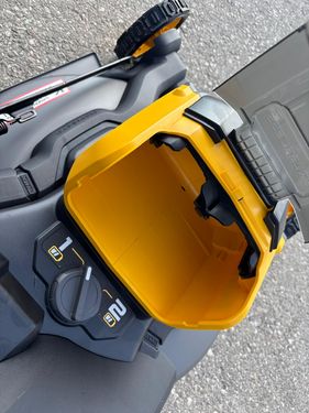 Rasenmäher Dewalt 660 Akkurasenmäher Rasenmäher Dewalt DCMWSP660N 30 kg Eigengewicht Akku System: alle 54 Volt XR Flex Volt Akku Schnitthöhenverstellung 6 Stufig Schnittbreite: 53 cm 67 Liter Fangkorb Fahrantrieb 3-in-1 Gerät zum Rasenmähen mit Fangkorb oder Seitenauswurf sowie Mulchen Das DEWALT 54 Volt XR FLEXVOLT Maschinen-Sortiment bietet Leistung für die schwersten Anwendungen - ohne Kabel! Bürstenloser Direktantriebsmotor mit 2x 54 Volt - Leistung eines Benzin-Rasenmähers bei weniger Lärm und ohne Abgase, verbesserte und stärkere Laufzeit und Wetterfestigkeit IPX4 klassifiziert Motor mit sensorgesteuerter Drehzahl (im Automodus) - je nach Grashöhe, wenn erforderlich wird die Motordrehzahl erhöht, bei leichteren Anwendungen wird Strom gespart - somit immer im optimalen Modus Mit hinterem Radantrieb ausgestattet für ein müheloses Mähen und variabler Geschwindigkeit – 6 Modi, um das Lauftempo einfach anzupassen Interaktive Benutzeroberfläche zeigt den Ladezustand, die Motorlast und -temperatur, Fehler bei nicht vollständig entriegeltem Griff, Auswahl zwischen drei verschiedenen Fahrmodi (High, Eco und Automodus)3-in-1 Gerät zum Rasenmähen mit Fangkorb oder Seitenauswurf sowie Mulchen Zentrale Schnitthöhenverstellung 6 Stufen zum schnellen und einfachen Anpassen an die Rasengegebenheiten Frontlicht zur besseren Sichtbarkeit – Möglichkeit auch bei widrigen Witterungsverhältnissen zu arbeiten Mit nur einem Knopfdruck läßt sich der Handgriff aus- und einklappen zum mühelosen Transport und zur platzsparenden vertikalen Aufbewahrung Hocheffizientes Stahl-Deck erleichtert das Abtransportieren vom Schnittgut - für verbesserte Laufzeit und weniger Strömungsabrisse Doppelmesser für verbessertes Mulchen Bis zu 106 Min. Laufzeit (ca. 2.231 m² Fläche) beim Einsatz von 2x 54 Volt FLEXVOLT 15 Ah AkkusFangbox (Liter): 67