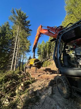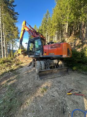 Prozessorbagger Hitachi ZX210W-3 + P60 Gebrauchtmaschine Mobilbagger: BJ: 2014 Bh: ca. 8500h Prozessorkopf Koller P60: BJ: 2020 Bh: ca. 5500h Aufbau Hitachi ZX210W-5 - Sicherheitsverglasung Frontscheibe (vorgesetzt) - Hubzylinderschutz - Rotator Black Bruin - Hydraulikölkühler - Rückleuchtenschutz - Forstverbau Kabine - Sicherungsdornset - Prozessoraufnahme fix verbolzt - Anhängemaul an Planierschild #Doosan #Woody #Develon #Prozessorbagger #Harvester #Gebirgsharvester #Koller #P60 #Forstbagger #HitachiKontaktdaten:
