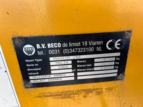 Nette Beco Maxxim 240 Bouwjaar 2006 Banden 650/50R26.5 Aluminium afdek kleppen Lucht remmen Machine nummer 72495Kontaktdaten: