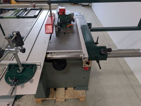 Zum Verkauf steht eine gebrauchte Holzprofi FPSF-2000 M Kreissäge Fräse mit einer Schnittbreite von 1000 mm. Die Maschine ist in einem guten Zustand und wurde von unserem Fachpersonal aufbereitet und überprüft. (Voll funktionsfähig) Technische Daten: - Kreissäge schwenkbar 90-45° - Fräse starr - Formatschiebetisch 2500 mm - Schnittbreite 1000 mm - Auslegertisch mit Ablänganschlag - kurzer Gehrungsanschlag - Fräsanschlag 240 mm - 3 Fräsgeschwindigkeiten 3000/5000/8000 U/min - 2 motorig á 4 PS Die Maschine steht in A-8561 Söding und kann während unserer Öffnungszeiten jederzeit begutachtet werden. Zwischenverkauf vorbehalten! Verwandte Begriffe: Säge, Kreissäge, Fräse, kombinierte Maschine, Kombimaschine, Fräsmaschine Referenz: R-Y00P2Kontaktdaten: