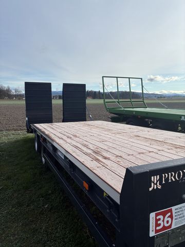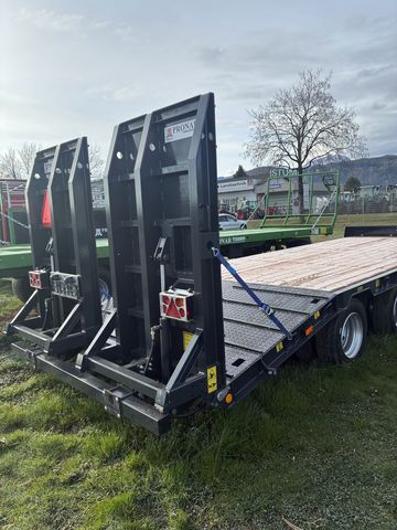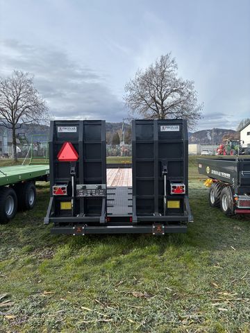 Der Pronar Tieflader des Modells RC 2100/2 ist ein hochwertiges Transportfahrzeug, das sich durch seine robuste Bauweise und vielseitige Ausstattung auszeichnet. Dieses Modell ist ein Zweiachser, was bedeutet, dass es mit zwei Achsen ausgestattet ist, die für eine stabile und gleichmäßige Lastverteilung sorgen. Ein besonderes Merkmal dieses Tiefladers ist die hydraulische Auffahrrampe(Breite Ausführung), die das Be- und Entladen von Maschinen und schweren Geräten erheblich erleichtert. Die hydraulische Steuerung ermöglicht ein einfaches und sicheres Handling, selbst bei anspruchsvollen Einsatzbedingungen. Die Bremsanlage des Pronar Tiefladers ist mit einer Druckluftbremse ausgestattet, die für eine zuverlässige und effektive Verzögerung sorgt. Zusätzlich ist die Bremse mit einer ALB (Automatische Lastabhängige Bremskraftregelung) versehen, die die Bremskraft automatisch an das Beladungsgewicht anpasst und somit die Sicherheit während des Transports erhöht. Ein weiterer Vorteil dieses Modells ist der hydraulische Stützfuß, der für zusätzliche Stabilität sorgt, insbesondere beim Be- und Entladen. Dies ist ein entscheidendes Merkmal, um die Sicherheit und Effizienz im Einsatz zu maximieren. Der Tieflader befindet sich in der Zustandsklasse „Besonders gut“ (Klasse 1), was bedeutet, dass er sich in einem ausgezeichneten Zustand befindet und zuverlässig funktioniert. Diese Klassifizierung unterstreicht die hohe Qualität und Langlebigkeit des Fahrzeugs. Insgesamt ist der Pronar Tieflader RC 2100/2 eine ausgezeichnete Wahl für Unternehmen, die einen zuverlässigen und leistungsfähigen Tieflader für den Transport schwerer Lasten benötigen.Zul. Gesamtgewicht (t): 19
