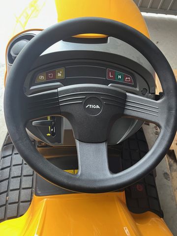 Neumaschine in Aktion nur noch wenige Stück verfügbar, Lagernd optimal für goßen Garten, 2 Zylinder Motor mit viel Hubraum 102 cm 2 Messer Mähdeck mit sehr gutem Auswurfkanal großer Grasfangkorb Batterie leicht zugänglich Hydrostat für Einfachste Bedienung Leistung: 14PS @ 2.400 U/min Schnittbreite: 102 cm mit 4 Stilrädern am Mähwerk Antrieb: Hydrostatantrieb Auswurf: Heckauswurf Räder: 15“x18“ Messerzuschaltung: Elektromagnetisch Schnitthöheneinstellung: 7-fach von 30-90 mm Konsole: 6 LED´s mit Multifunktionsanzeige Fangbox: 300 Liter Lenkrad: STIGA Standard STIGA Sitz Tankinhalt: 8 Liter Gummierte Trittfläche: JaFangbox (Liter): 300