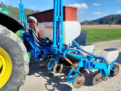 Gebrauchtes sehr gut erhaltenes MONOSEM Maissägerät Baujahr 2015, Modellreihe NG, Mulchsaat-Version mit seitlichen Scheibenscharen 6-Reihig mit Doppelteleskoprahmen, 4,50m Arbeitsbreite, 75 cm Zwischenreihe, hydraulisch betätigte Spuranzeiger Fahrzeugmitte, mit Unterfußdüngerstreuer, PVC/Behälter mit Einfülltrichter ( Eigenbau ) zum Befüllen mit Frontladerschaufel, Unterdruckturbine mit Gelenkwellenantrieb mech Hektarzähler, Beleuchtung und Warntafel hinten… wenig gearbeitet, keine 1000 ha jederzeit Einsatzbereit Verkauf im Kundenauftag Preisvorstellung € 11.500,-Reihenanzahl: 6