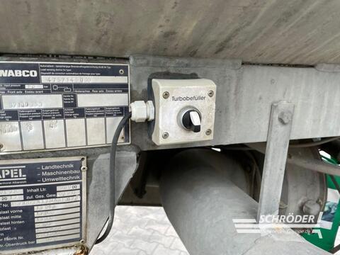 Bereifung (v): 710/50 R26.5 BKT RIDE MAX, Bereifung (h): 710/50 R26.5 BKT RIDE MAX, Zwangs-Deichsellenkung (K50) ________ Fahrwerk: Luftfederung, Hersteller Vakuumpumpe: Hertell 14.000 L/min, Beschleuniger, Bedienkassette, Andockarm, Andocktrichter hinten oben, Andocktrichter hinten links unten, Hinweis: Gebrauchtmaschinen verkaufen wir ausschließlich an Gewerbetreibende und ohne Garantie, Preis gilt für vorhandenen Zustand. Angebot freibleibend. Irrtümer und Zwischenverkauf vorbehalten.