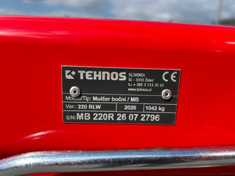 +WWGW +Schutzgummi +Arbeitsbreite: 220 cm +Gewicht: ca. 926 kg +Traktorleistung: 59 – 81 kW / 80 – 110 PS +Drehzahl: 540 oder 1.000 U/min +Rotor (LowVib): 20 Schlegel (1,4 kg oder 1,46 kg) +Antrieb: 5-fach Keilriemen +Seitenverschiebung: ca. 150 cm +Robuster Gehäusebau +Geschraubte Gegenmesser Der Tehnos MB 220 LW (Profi) ist ein robuster Seitenmulcher mit 2,20 m Arbeitsbreite, konzipiert für Traktoren von ca. 80–110 PS. Er zeichnet sich durch den LowVib-Rotor (20 Schlegel, 1,4 kg) für ruhigen Lauf, 5 Keilriemen, ca. 1,5 m hydraulische Seitenverschiebung.Hektar (ha): 0