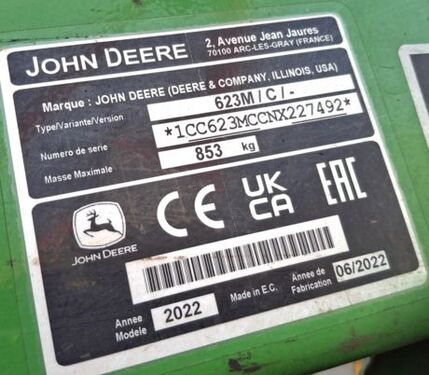 TIPOLOGIA CARICATORE FRONTALE MARCA JOHN DEERE MODELLO 623 M ANNO DI FABBRICAZIONE 2022 MATRICOLA X227492 agribertocchi