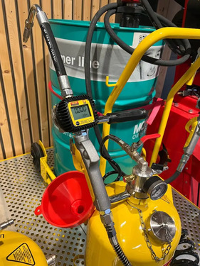 Pneumatischer Ölspender 24 l (mit Niveauanzeige)PU Spiralschlauch 3 mÖlpistole mit Schlauchauslauf und manuellem Antitropfventil Ø 12 mmFülltrichterAuch mit Digitalem Literzähler erhältlichIdeal zum befüllen von Achsen, Endantrieben, GetriebeFür Auskünfte stehe ich dir gerne zur VerfügungMarkus Beyeler 031 333 30 36www.landmaschinenag.ch