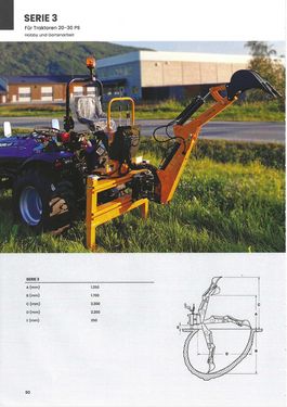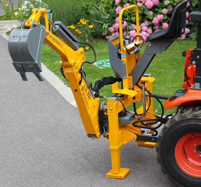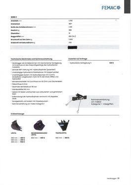 Grabungstiefe 170 cm Seitenverschiebung 140 cm mit mechanischer Blockierung Unabhängige hydraulische Abstützungen mit Sperrventilen Option: Hydraulische Blockierung --------------------------------------------------------------------------------- Tifermec Hydrac Anbaubagger Bagger Traktor Heckbagger