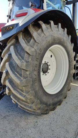 2 Stk. Räder Trelleborg VF 710/75R42 TM1000 Blue_Tire 184D / 181E auf orig. CNH-Felgen DW25Bx42 Nr: 47535869 aus Umbereifung von Vorführtraktor mit 460 Std. Trelleborg Traktorräder VF 710/75R42 TM1000 Blue Tire Entdecken Sie die hochwertigen Traktorräder der Marke Trelleborg, Modell VF 710/75R42 TM1000 Blue Tire. Diese erstklassigen Reifen sind speziell für den Einsatz an Traktoren konzipiert und bieten herausragende Leistung und Langlebigkeit. - Geschwindigkeitsindex (SI): 65 km/h (SI: D) - Last-Index (LI): 184 (9000 kg) - TT/TL: Schlauchlos (TL) - Bauweise: Radialreifen - Felgendurchmesser: 42 Zoll - Zustandsklasse: Besonders gut (Klasse 1) Dieses Set besteht aus 2 Rädern, die auf original CNH-Felgen DW25Bx42 montiert sind. Die Felgen tragen die Nummer 47535869 und garantieren eine perfekte Passform und Stabilität. Die Räder stammen aus einer Umbereifung eines Vorführtraktors mit lediglich 460 Betriebsstunden, was ihren hervorragenden Zustand unterstreicht. Mit dem **184D / 181E** Last- und Geschwindigkeitsindex sind diese Reifen ideal für landwirtschaftliche Anwendungen, bei denen Zuverlässigkeit und hohe Tragfähigkeit erforderlich sind. Die schlauchlose Bauweise und die radialen Konstruktionsmerkmale sorgen für eine verbesserte Bodenanpassung und erhöhten Fahrkomfort. Diese Trelleborg Traktorräder sind die perfekte Wahl für Landwirte, die Wert auf Qualität, Effizienz und Langlebigkeit legen. Erleben Sie die überlegene Leistung der Trelleborg TM1000 Blue Tire-Serie, die speziell entwickelt wurde, um den Anforderungen moderner landwirtschaftlicher Maschinen gerecht zu werden.Dimension: 710/75R42