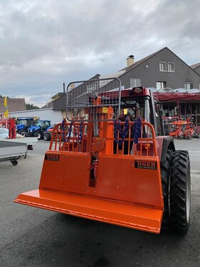 - Profi-Seilwinde Tiger, Zugkraft 8-10t - Tellerrad-Antrieb im Ölbad laufend, in der Last schaltbare Kupplung, Untersetzung, hydraulische Eigenversorgung Marke Bosch, Elektrosteuerung. - hydr. Klappschild - breite Seiltrommel 160m Seil, 12mm HV mit 16,5t Bruchlast - Rückeschildbreite 2.2m - hydraulische Seileinzug-Höhenverstellung 65cm - hydr. Seilausstoss - Tiger Hilfswinde inkl. 300m Dyneema Rückholseil - Umlenkrolle mit Zubehör für Hilfswinde - Proportionalausbremsung, sehr genaue Regelung der Bremskraft mittels Proportionalsteuerung - Funkanlage HBC mit Prop-Bremse , Gewicht:920
