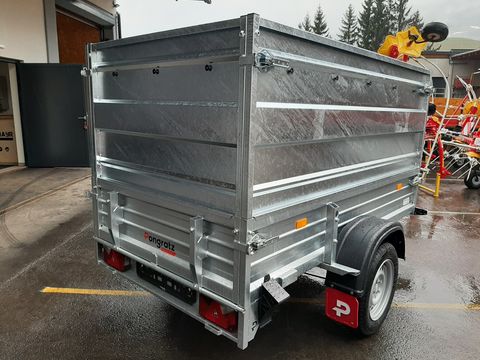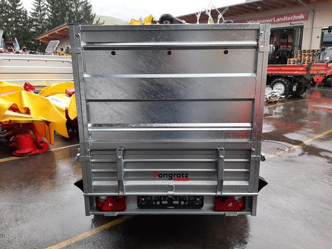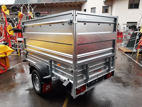 + ORIGINAL Pongratz Profianhänger + Ganzstahlvariante verzinkt + Stirnwand klappbar + Rohrscharnier - verstärkte Ausführung + Stahlbordwände + Auflaufgebremste Variante + Starkes Stützrad + Aufsatzwände 800 mm + Flachplane + Rungenset - Verstärkung BW hinten und seitlich Optionen: + Abstellstütze hinten mit Rohrschelle je Stück 25,- inkl. + Planenspriegel (2 Stück empfohlen) je Stück 30,-- inkl.Zul. Gesamtgewicht (t): 1,3