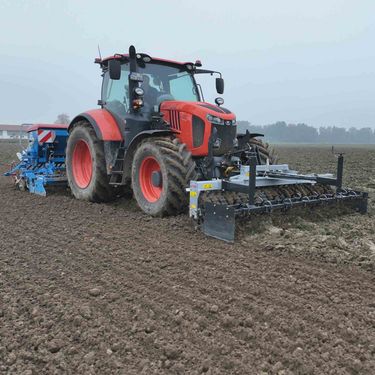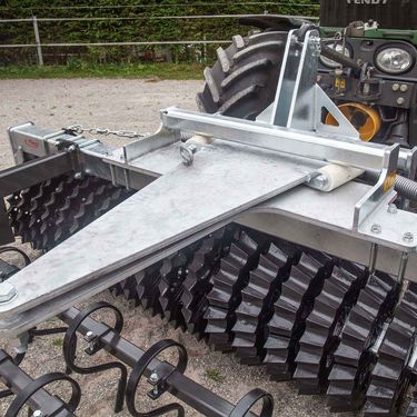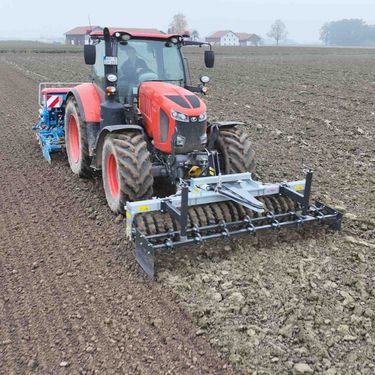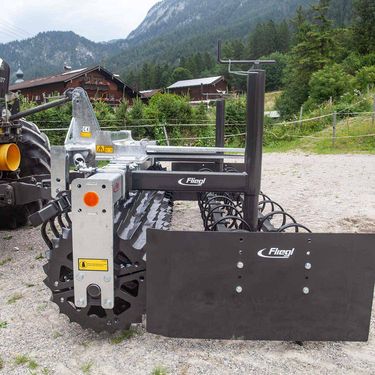 Frontpackerwalze mit Dreipunktaufnahme Die Fliegl Frontpackerwalze ist ein massives und extrem verschleißfestes Anbaugerät zur Saatbettbereitung. Sie schafft ein Saatbett mit idealer Einebnung und erzielt garantiert ein optimales Zerkleinerungsergebnis. Dafür sind keine Hydraulikanschlüsse erforderlich – die Walze ist in nur wenigen Minuten aufgenommen und einsatzbereit. Die 1000 kg schwere Frontpackerwalze aus dem Hause Fliegl besteht aus einem Grundrahmen mit Schwenkbock, einer Voregge, Walze und einem Abstreifer. Der Grundrahmen ist feuerverzinkt, widerstandsfähig und benutzerfreundlich gefertigt und ist das Bindeglied der einzelnen Gerätekomponenten. Hochwertige Flanschlager und robust geschweißte Kanten tragen zu einer besonders hohen Langlebigkeit bei. Der am Rahmen angebrachte Schwenkbock ist mit Zugfedern gelagert und sorgt im Einsatz für saubere Kurvenfahrten. Für die Vorbearbeitung des Bodens wird die Voregge mit einem Zinkenvorsatz bestückt. Die Zinken sind in verschiedenen Größen verfügbar und halten selbst höchsten Belastungen bei besonders grobscholligen und schweren Böden stand. Das Herzstück des Anbaugeräts ist die groß dimensionierte Ringprofilwalze. Mit einem Durchmesser von 540 mm kann sie leichtzügig über den Acker geführt werden. Sie besteht aus 22 Walzenringen aus Grauguss und hat eine schneidende und drückende Funktion, sodass auch auf schweren Böden eine effektive Zerkleinerung gewährleistet ist. Die Sternspitzen arbeiten punktuell und massieren so Grünland- und Zwischenfruchtsaatgut hervorragend in den Boden ein. Zwischen den Walzenringen sind spezielle Abstreifer in Fahrtrichtung angebracht. Diese haben einen Selbstreinigungseffekt und beugen gezielt Verstopfungen vor. Features: » Arbeitsgeschwindigkeit: ca. 10 - 12 km/h » Robuste Sternspitzen arbeiten punktuell und arbeiten Grünland- und Zwischenfruchtsaatgut optimal in den Boden ein Technische Details: » Arbeitsbreite: ca. 3000 mm » Dreipunktaufnahme Kat. 2 » Grundrahmen mit Schwenkbock – Einheit mit Zugfedern gelagert » Groß dimensionierte Ringwalze (Ø 540 mm) » Abstreifer für Selbstreinigung » Inkl. Voregge » Eigengewicht: ca. 1000 kgKontaktdaten: