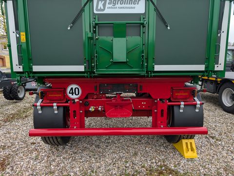 Neuer 2-Achs-Dreiseitenkipper Kröger Agroliner HKD 302 - 18to. zul. Gesamtgewicht, - 40km/h Ausführung - Light-Version: verstärktes Bodenblech 3mm - Bordwände mit Kunststoffplatten, 18mm stark, Bordwandhöhe 1500mm - durchgehende Untenentriegelungswellen rechts + links mit 2x Übertotpunktspanner an Stirnwand - Aufsteckdreiecke vorne und hinten (300mm) + Mitteldreieck mit abklappbarem Spriegelbaum - gelbe Abdeckplane mit Alu-Rollbrett Handkurble - seitlich abnehmbare Anschlagstützen auf der rechten Seite - Seitenbordwände horizontal geteilt mit Gummiabdichtsystem einseitig rechts - Rückwand horizontal geteilt mit Gummiabdichtsystem - Mittelrungen kpl. abklappbar und herausnehmbar auf der linken Seite - Seitenbordwände zusätzlich als Portal von der Mitte, ausgehend nach außen aufschwenkbar inkl. einstellbarer Exzenterschrauben, auf der linken Seite - Anhängekupplung autom. inkl. Licht-, Luft- und Hydraulikanschluss für 2. Anhänger - Unterfahrschutz auf Rundrohr mit nach oben versetzter Beleuchtungseinrichtung - Kunststoffkotflügel Vorderachse - Y-Zuggabel verstärkt (26to.) 1900mm lang - Seitenmarkierungsleuchten (LED) und weiße Positionsleuchten vore - Positions- und Kennzeichenleuchten in LED-Ausführung - 3-Kammer-Rückleuchten eckig, LED-Ausführung, inkl. Blinkerausfallkontrolle - Bestätigung Kippwerk 2. Anhänger mit seperaten Hydraulikanschluss + Absperrhahn zur Zugmaschine - Bereifung 385/65 R22.5 "NEU" auf Mittelstegfelge - inkl. EU-Typengenehmigung (COC-Papiere)Zul. Gesamtgewicht (t): 18