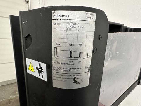 TOYOTA Hochhubwagen Doppelstock SPE 200 DN Baujahr: 10/2018 3304 Betriebsstunden Tragkraft: 1000 kg auf den Gabelzinken Tragkraft: 2000 kg auf den Stützarmen Hubmast: Duplex Hubhöhe: 1900 mm Bauhöhe: 1483 mm Freihub: 172 mm Gabellänge: 1150 mm Bereifung: Polyurethan - INITIALHUB - Batterie 24 - Ladegerät - elektrische Lenkung - einklappbare Fahrerplattform GUTER ZUSTAND !!! - servicegepflegtes Gerät !!! Für etwaige Rückfragen steht Ihnen Herr Thomas Lehner natürlich gerne zur Verfügung !Kontaktdaten: