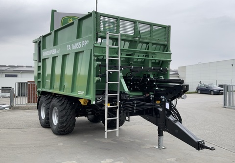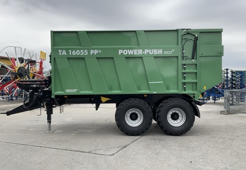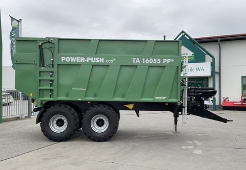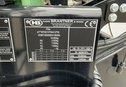 Klassifizierung: Neumaschine; Seriennummer/Fahrgestellnummer: 136094; Höchstgeschwindigkeit (km/h): 40; Typ der Anhängerbremse: Pneumatisch; Anhängeart: Kugelkopfkupplung; Anzahl Vorbesitzer: 1; Weitere Maschinenmerkmale: Abschiebewagen Brantner TA 16055 PP eco+ Neumaschine 40 km/h mit CoC EU 2-Leiter Druckluftbremse mit ALB hydraulisch abklappbarer Unterfahrschutz in Kombination mit Rückwand Aufbauhöhe 2.000 mm Kartoffelschieber hinten Bereifung 560/60 R22.5 BKT FL630Zul. Gesamtgewicht (kg): 16000