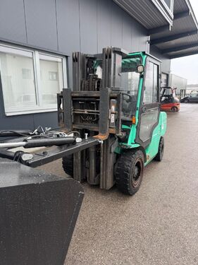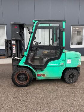 Bauart: Frontstapler / Dieselstapler, Tragkraft: 3500kg, Hubhöhe: 4360mm, Bauhöhe: 2270mm, Freihub: 1560mm, Gabellänge: 1180mm, Bereifung vorne: Vollgummi 80 - 100% , Bereifung hinten: Vollgummi 80 - 100% , Anbaugeräte: Seitenschieber, Beschreibung: Gebrauchtstapler, Diesel, Tragkraft 3500kg, Hubhöhe 4360mm, Seitenschieber. Gerät wird im IST-Zustand verkauft, ohne Prüfplakette.
