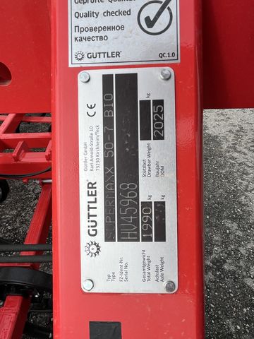 Güttler Supermaxx 50-7 BIO - Neumaschine! - Bj 2025 - Arbeitsbreite 5m - 7 Zinkenreihen mit Breit Schar - Hydr. Klappbar (2 teilig) - Vordere & hintere Stützräder zur Tiefenverstellung - 5m Striegel, 2-Reihig - 3 Punkt Anbau Kat II & III Optional mit Gänsefuß-Schar erhältlich! Standort der Maschine: Filiale Unterweitersdorf!Zinken (Stk.): 37