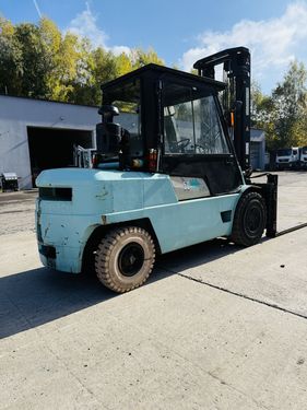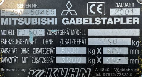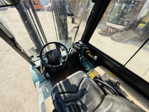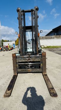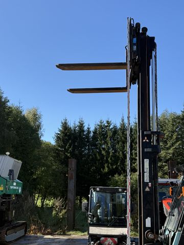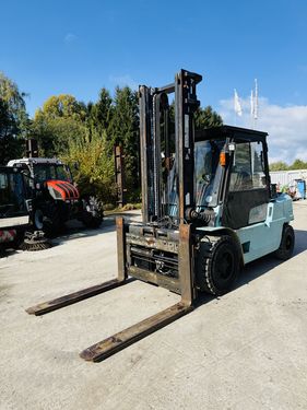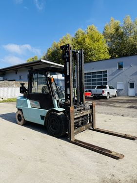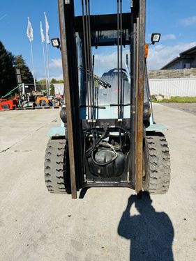 Stapler Mitsubishi FD500, Hubkraft 5 to, Hubhöhe 4.1m, Eigengewicht 7.2 to, 16.279 Stunden, Baujahr 2001, aus Erstbesitz, Letzte Prüfung 08/25, Heizung, LED Arbeitsscheinwerfer, hydr. Zinkenverlängerung, Bereifung 80%, hydr. Schläuche neu, Mastrollenlagerung neu, Seitenverschub hydraulisch, Zinkenverstellung hydraulisch, Anhängerkupplung, 6 Zylinder Mitsubishi, Dieselmotor, Hydrostat mit 2 Stufen.