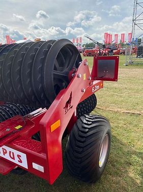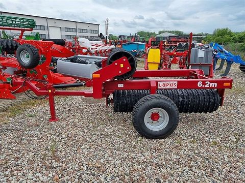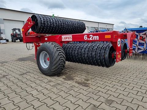 Lupus Saatbettbereitungs- und Säwalze 6,2 m Arbeitsbreite: 6,2 m Cambridge-Ringe Ø 500 mm Rahmen mit Anbau für oberen Hitch des Traktors Abstellstütze Walze in drei Sektionen Räder 11.5/80-15.3 Transportsicherung Leistungsbedarf: 90–110 PS Gewicht: 2.650 kg Zusatzausstattung: Frontstriegel mit hydraulischer Verstellung Beleuchtung Räder 400/60-15.5 ------------------------------------------------------------------------------------------------------------------- Lupus Seedbed Preparation Roller 6.2 m Working width: 6.2 m Cambridge rings Ø 500 mm Frame with upper hitch linkage Support stand Three-section roller Wheels 11.5/80-15.3 Transport safety locking system Power requirement: 90–110 HP Weight: 2,650 kg Optional equipment: - Front levelling harrow with hydraulic adjustment - Lighting - Wheels 400/60-15.5Kontaktdaten: