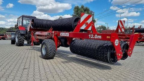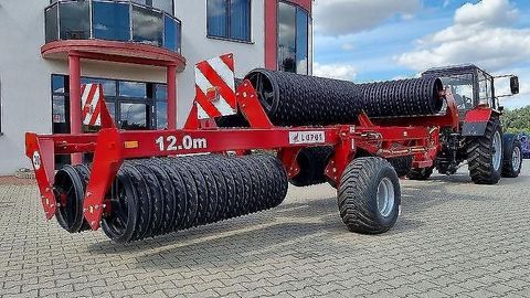 Lupus Ackerwalze 12 m - Arbeitsbreite: 12 m - Cambridge-Ringe Ø 500 - Gewicht: 5500 kg - Leistungsbedarf: 160-200 PS - Dreiteilige Cambridge-Walze - Rahmen mit Anhängevorrichtung an der oberen Anhängevorrichtung des Traktors - Transportschutz - Stützfuß Optionale Ausrüstung: - Beleuchtung - Cambridge-Ringe Ø 530 oder Ø 600 - Crosskill-Ringe Ø 500 -------------------------------------------------------------------------------------------------------------------------------------------------------------- Lupus Sowing roller 12.0 m - Working width: 12 m - Cambridge rings Ø 500 - Weight: 5500 kg - Power requirement: 160-200 HP - Three sections of Cambridge roller - Frame with hitch on the tractor's upper hitch - Transport protection - Support foot Optional equipment: - Lighting - Cambridge rings Ø 530 or Ø 600 - Crosskill rings Ø 500Scheibendurchmesser (mm): 500