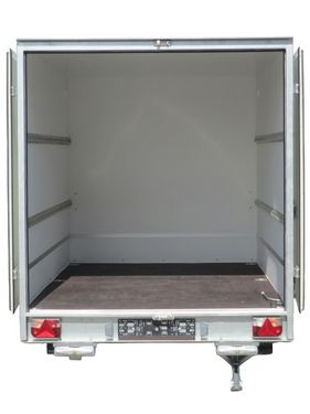 Gesamtgewicht: 1300 kg Eigengewicht: 730 kg Nutzlast: 570 kg Innenmaße: 3000 x 1800 x 1800 mm Ladehöhe: 60 cm Achsen: 1 Achsen – gebremst Bereifung: 195/55 R10C
