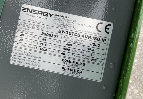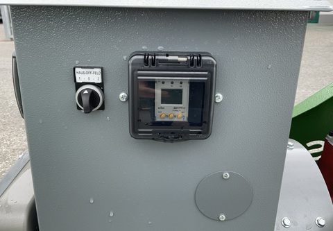 Klassifizierung: Neumaschine; Seriennummer/Fahrgestellnummer: 2306357; Service Historie: Ja; Anzahl Vorbesitzer: 1; Weitere Maschinenmerkmale: Neumaschine - prompt verfügbar CFS Energy Zapfwellengenerator 30 kVA Dauerleistung 30 kVA Langsamläufer 1.500 U/min am Generator mit AVR-Regelung Umschalter für Haus- und Feldbetrieb Hausbetrieb mit Steckdose 1x CEE 63 A Feldbetrieb mit Isolationsüberwachung, Steckdose 1x CEE 32 A und 1x SCHUKO analoge Anzeigen für Spannung, Stromstärke und Frequenz Dreipunktanbau ErdspießKontaktdaten: