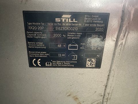 STILL Elektrostapler RX 20-20 P Baujahr: 2020 9769 Betriebsstunden Tragkraft: 2000 kg Hubmast: TRIPLEX-Freihub Hubhöhe: 6130 mm Bauhöhe: 2610 mm Freihub: 2000 mm Gabellänge: 1150 mm Bereifung: Super-Elastik - NON-Marking - Seitenschieber - Batterie 48 V / 625 Ah - Ladegerät - NEU !!! - Dachabdeckung - LED-Arbeitsscheinwerfer vorne - BlueSpot vorne u. hinten GUTER ZUSTAND !!! Für etwaige Rückfragen steht Ihnen Herr Thomas Lehner natürlich gerne zur Verfügung !Kontaktdaten: