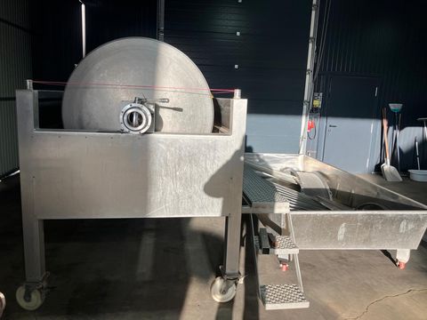 Gut erhaltene pneumatische Weinpresse 3000 L - Gestellerhöhung - Laufsteg mit Treppe - mit Saftwanne - Zentralbefüllung - vollautomat. digitale Steuerung- - kompl. Niro - Gebläse und Verdichter verbaut - voll funktionstüchtig Hr. Schreiber: - Wein & Obstbau Center Haugsdorf